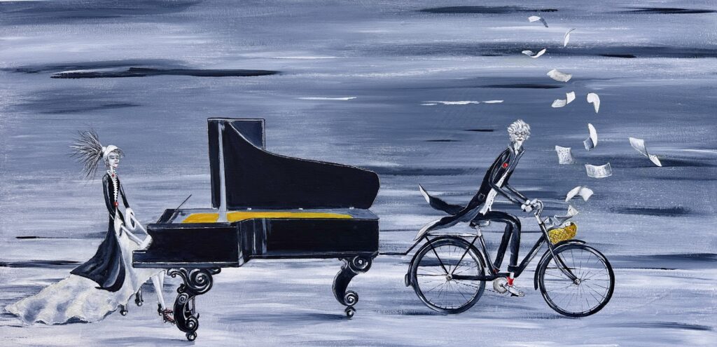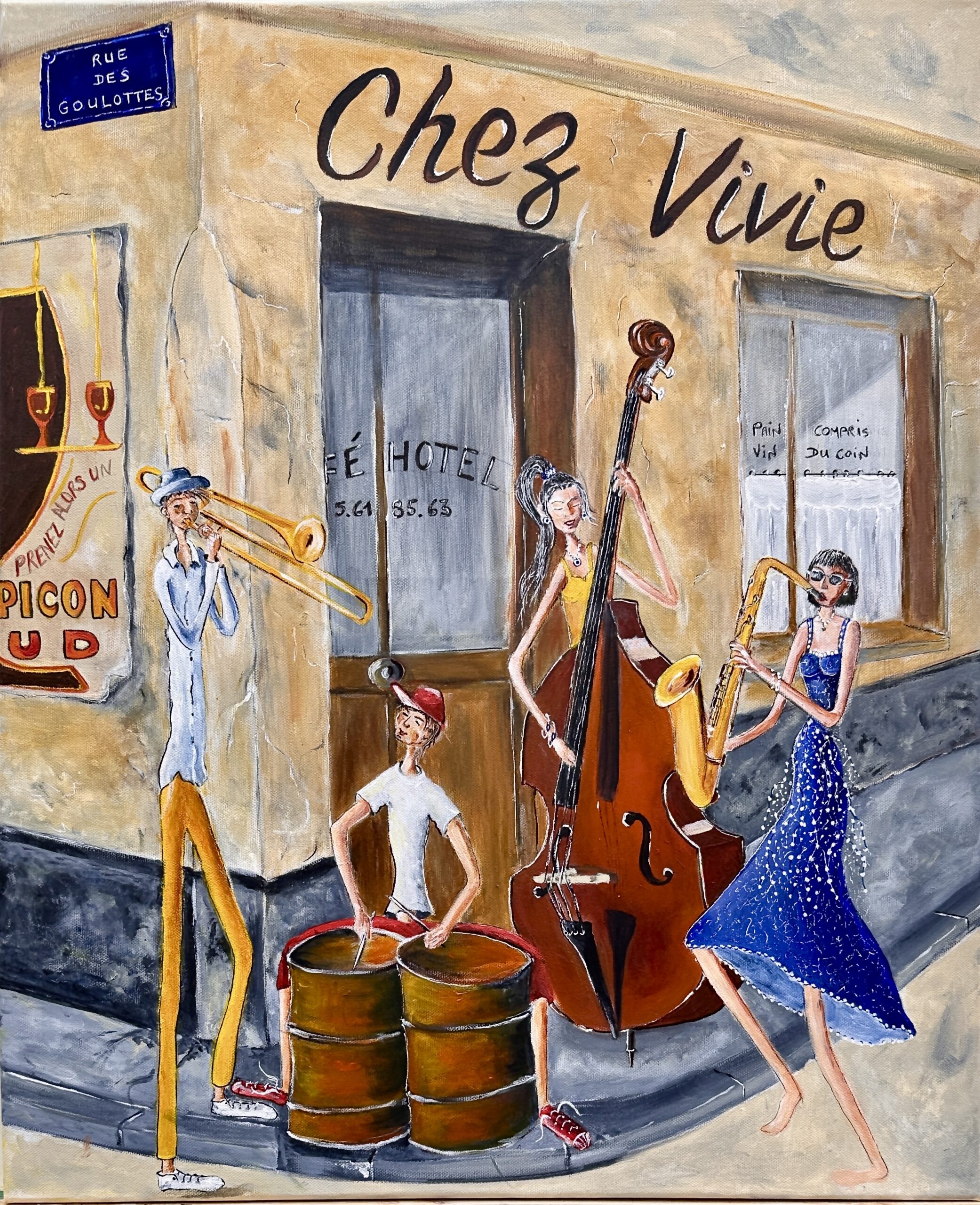Tom l’écrivainréfugiés en mon seinl’inconnu masquéla souffleuse de nuagela fille au pantin la funambuleMan on the moonpromenade CovidCubaNon essentielen familleSave the musicViva la libertadJazz is alivepiano vagabondGazaafricachez Viviemes flamandsfresque de 8 m réalisée pour un mariage